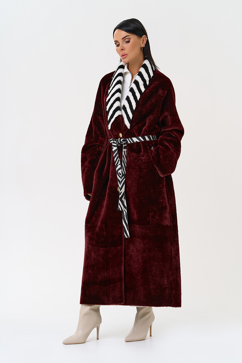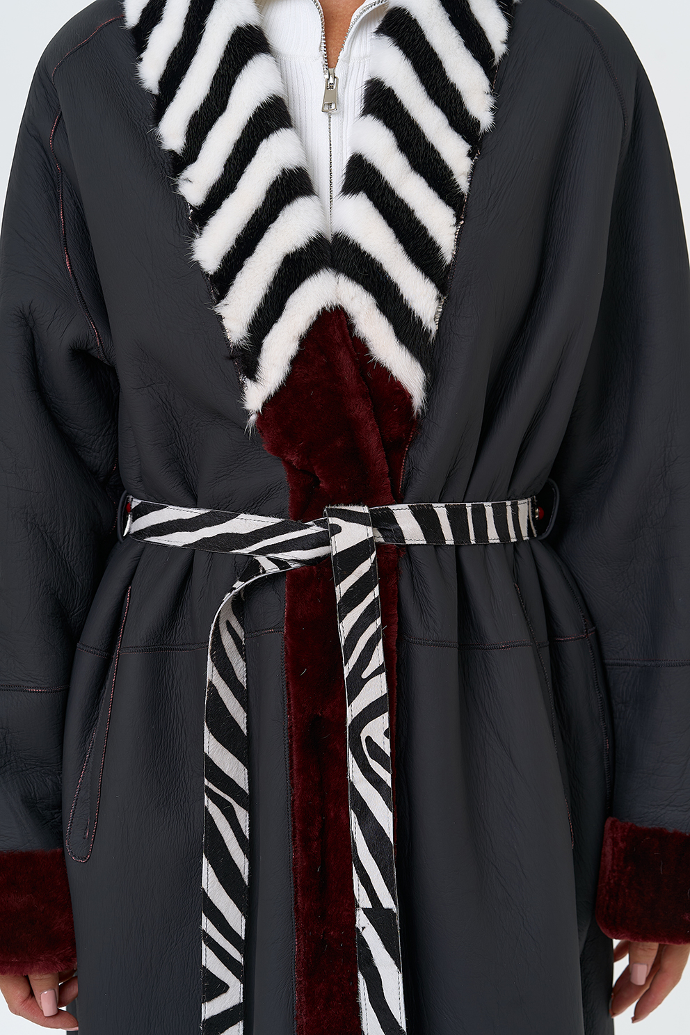 Вид застежки - кнопки, пояс из меха теленка Cavallino
